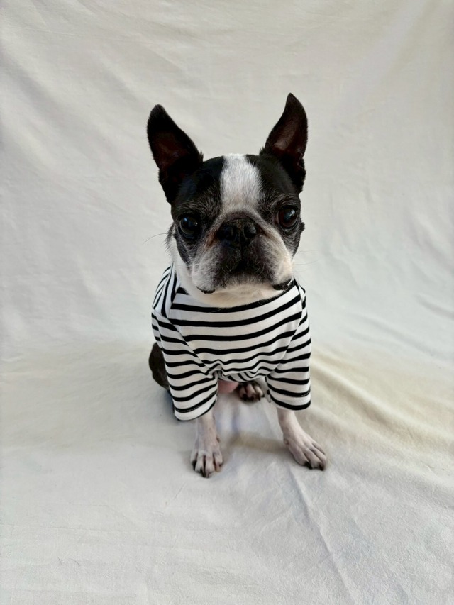 【こちらのお洋服は完成品です。サイズ変更が出来ません。】 【お届け:1週間程度】 bonjour dogの定番!ボーダーTシャツです。 今回のカラーはホワイト×ブラック(リブ:オフ白)。ブラック×ホワイト(リブ:茶色) ボーダーのお洋服は何枚あっても重宝します。 ベレー帽との相性もぴったりです。 イベント後なので、ブラック×ホワイトは全サイズ揃っていません。 サイズをご確認ください。 ホワイト×ブラックは【注文後制作】ページから 着丈調整(別途料金かかります。)も承ります。 ・カラー:ホワイト×ブラック、ブラック×ホワイト ・素材:コットン100% ・生地の厚さ:厚地のTシャツ生地 ・サイズ:ウエアサイズ表をご覧ください。 ※他の商品と一緒にご注文の場合は、揃い次第発送になります。 【再入荷について】 ・今回で生産終了です。
