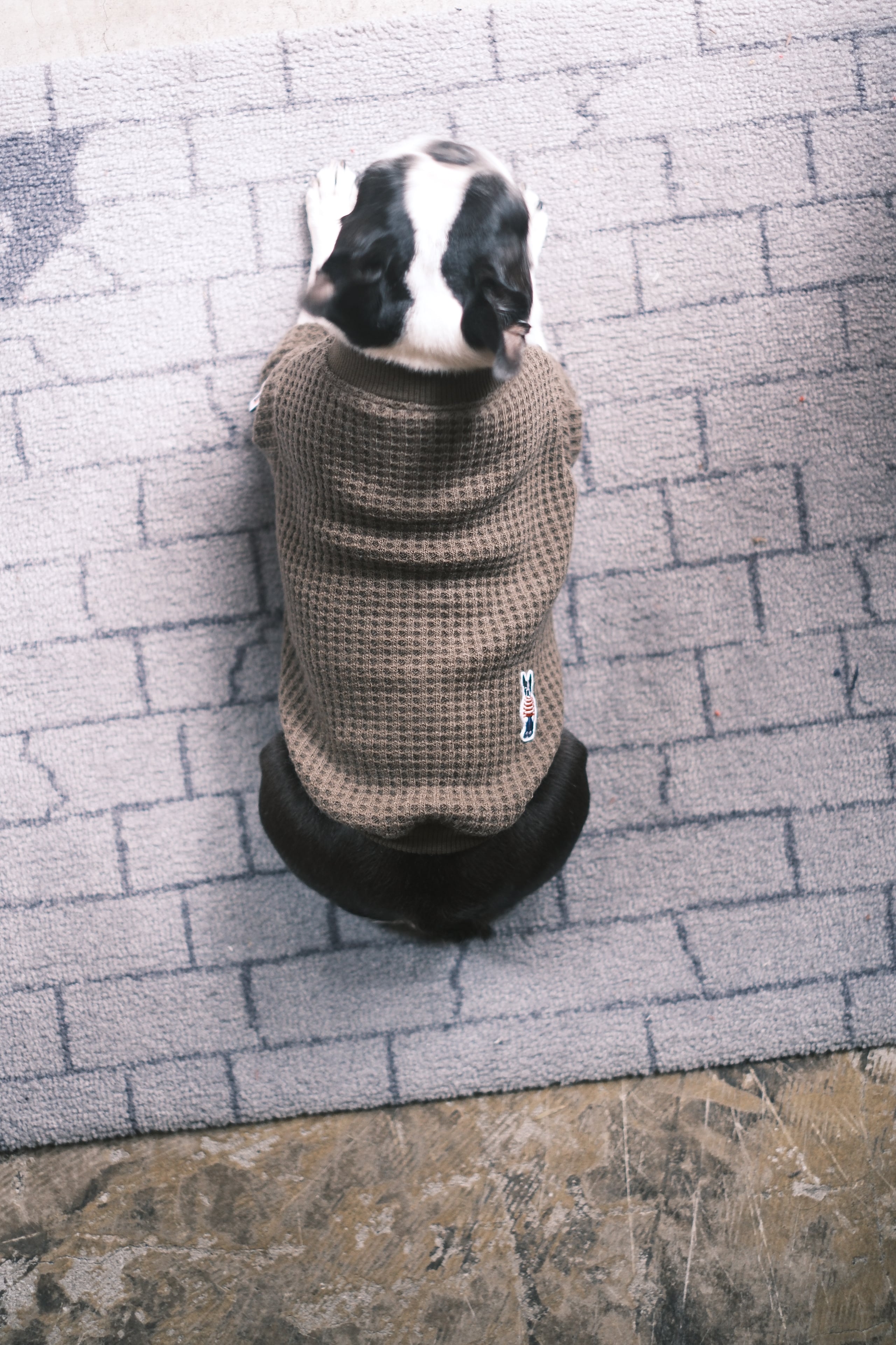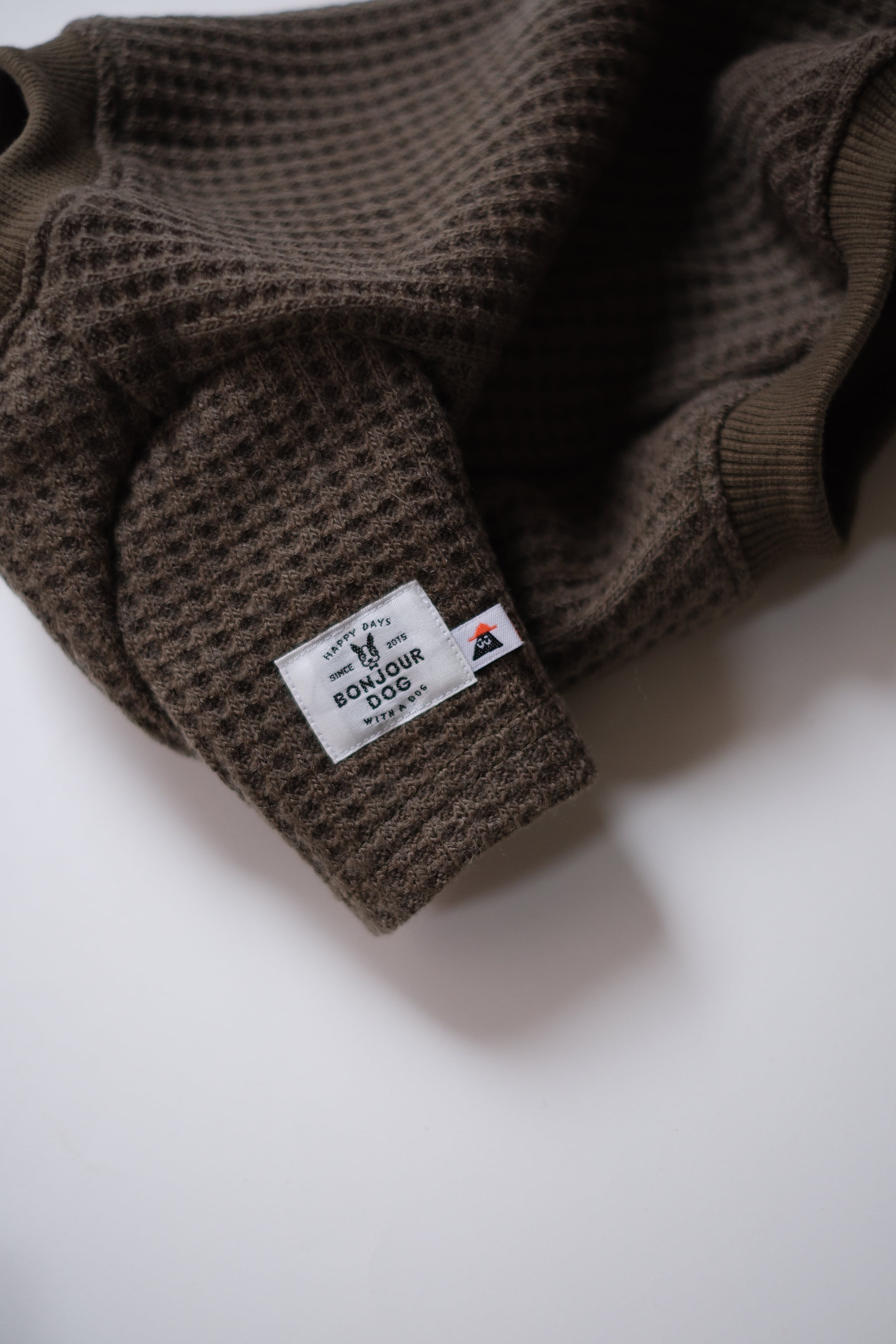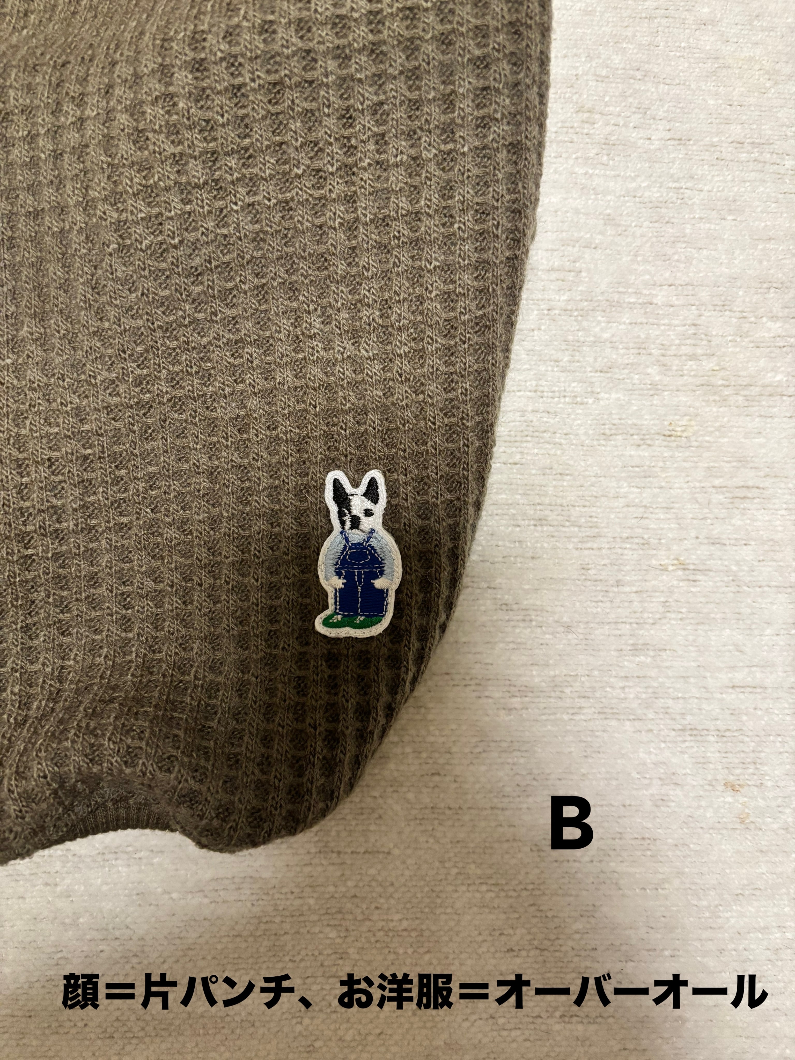 カーキのビッグワッフル生地にシシュウブギウギのワッペンが付いています。