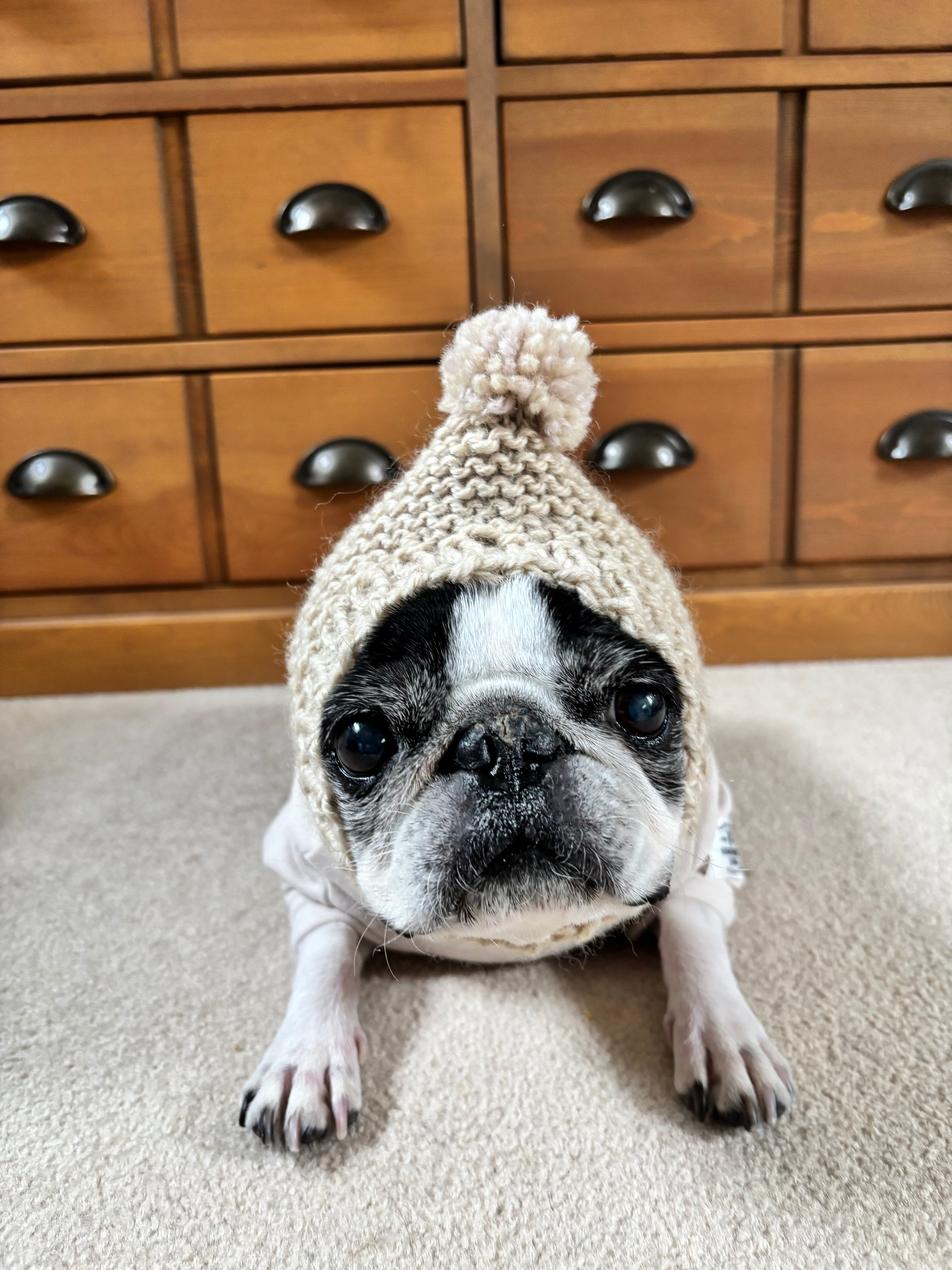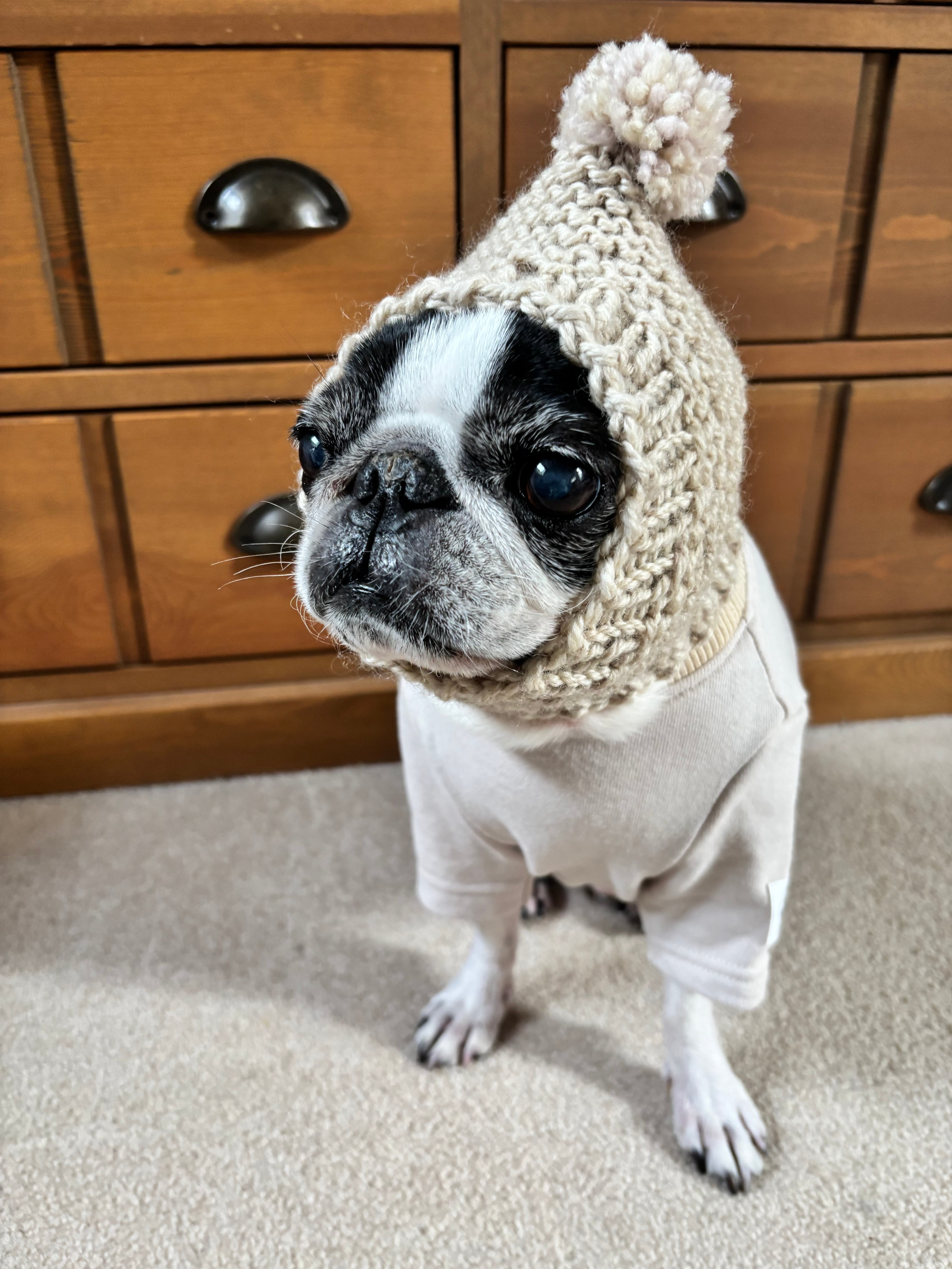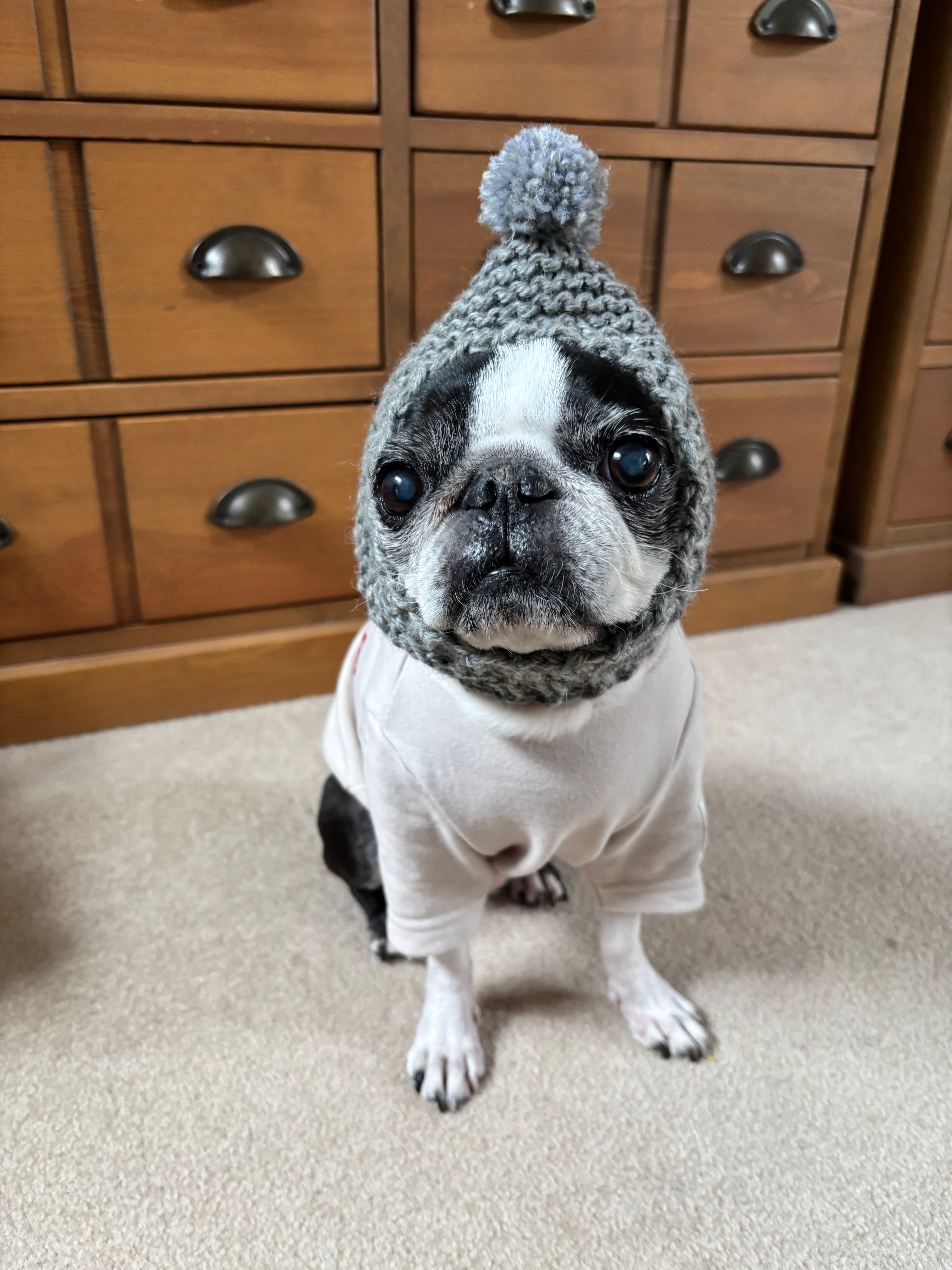 タラ♀:頭周り33cm、着用こびと帽サイズ33、34cm